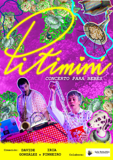 PITIMINÍ: CONCIERTO PARA BEBÉS, es una experiencia única para las familias con bebés. Los artistas Davide González e Iria Pinheiro presentan este concierto sensorial diseñado para los más pequeños, que invita a disfrutar de un viaje musical con melodías y sonidos que estimulan la curiosidad de los bebés en un ambiente seguro y acogedor. Al jugar con las vibraciones, los efectos, los sonido, la vocalización y la armonía, construyen un universo sonoro envolvente para la familia grande y la pequeña. Espectáculo estrenado en el XXVI Salón do Libro de Pontevedra.